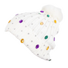 Mardi Gras Rhinestone Knit Beanie with Faux Fur Pom