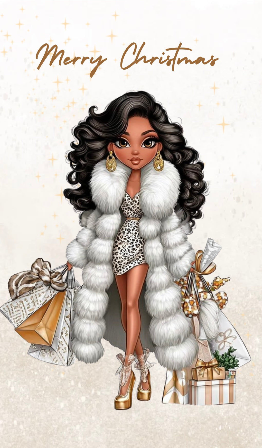 ✨ Merry Christmas – Lady in White Faux Fur with Presents