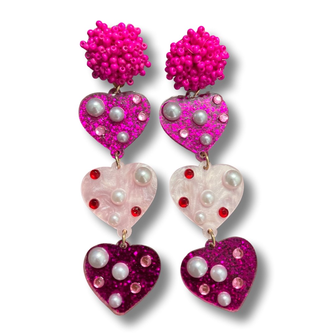 These beautiful heart earrings are a must-have for Valentine’s Day or just any day!! Perfect and lightweight, dress them up or dress them down! Wear them every day—beautiful earrings!! They measure 3.5” L x 0.54” W and are made of a high-quality acrylic material that is very lightweight yet durable.