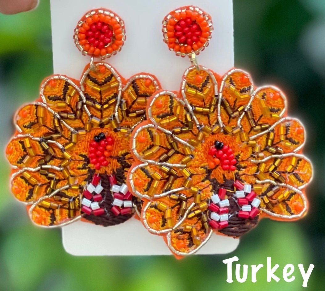 Turkey seed bead earrings-Thanksgiving Earrings-Fall seed bead earrings-seed bead earrings-Holiday Seed Bead earrings