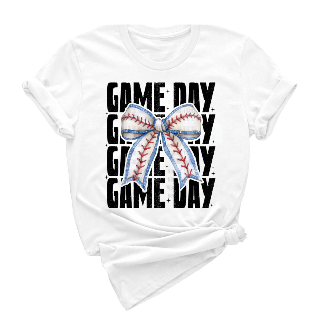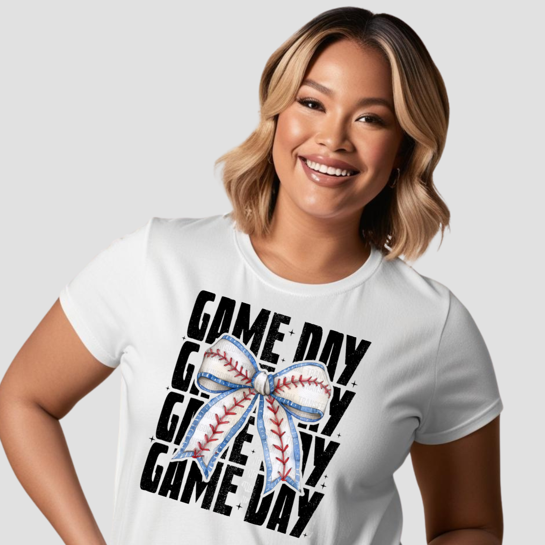 - Bold "Game Day" blue ribbon design for a sporty, stylish look