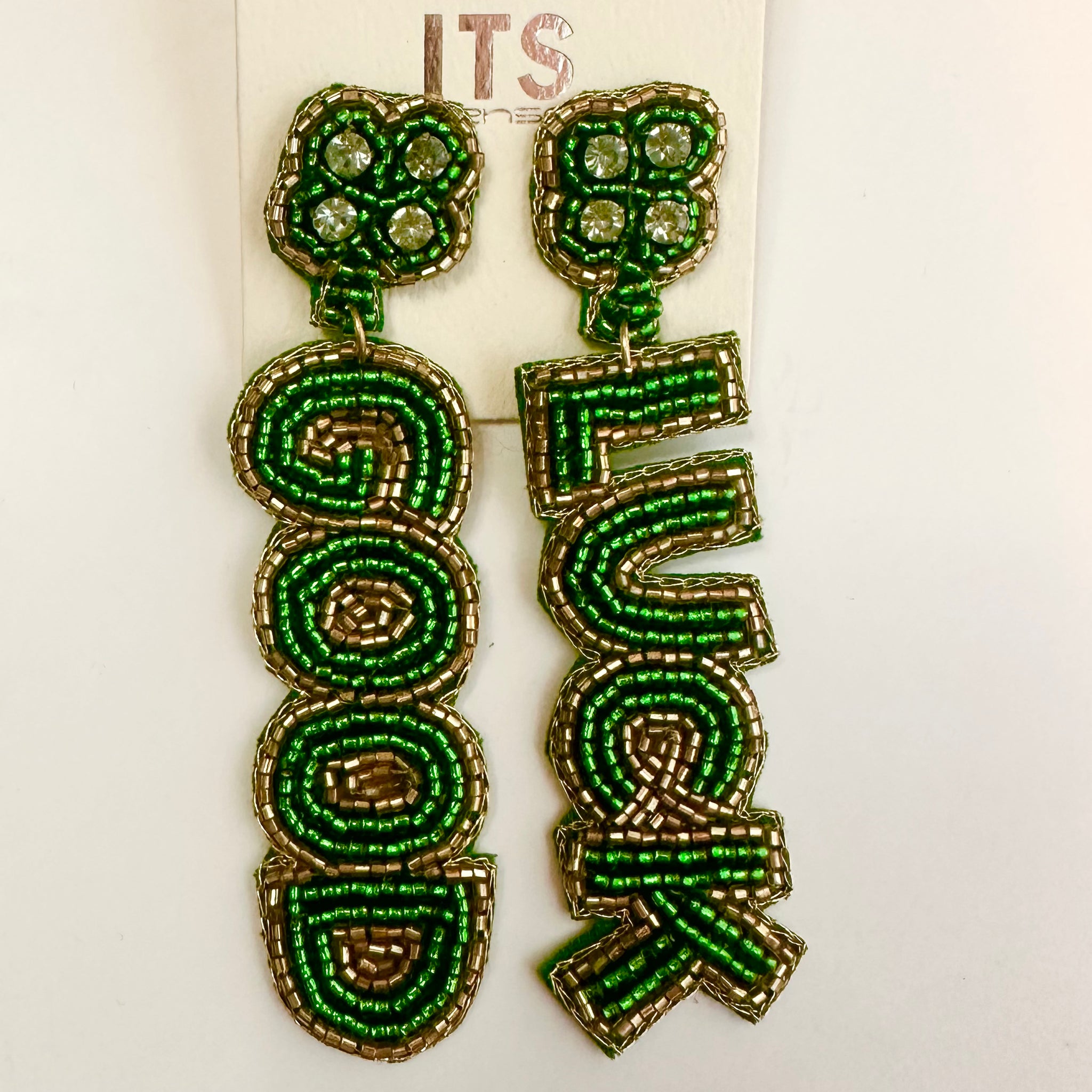 This sophisticated pair of Good Luck St. Patrick's Day Earrings feature intricate details and a high-quality finish. Perfect for any special occasion, these earrings will be sure to add a touch of Irish luck to your look.