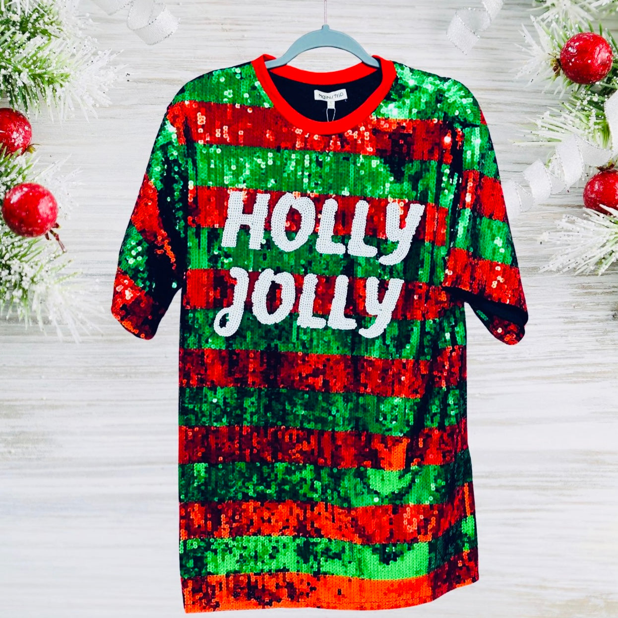 Christmas Sequins Top, Christmas Sequins Dress, Sequins T-Shirt Dress.