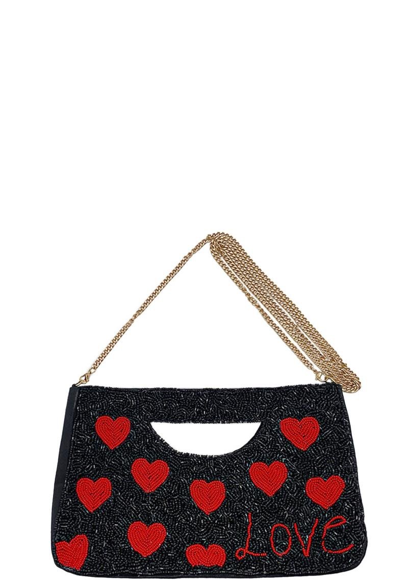 Seed bead love heart clutch. Comes with a detachable gold chain. Valentine Gift