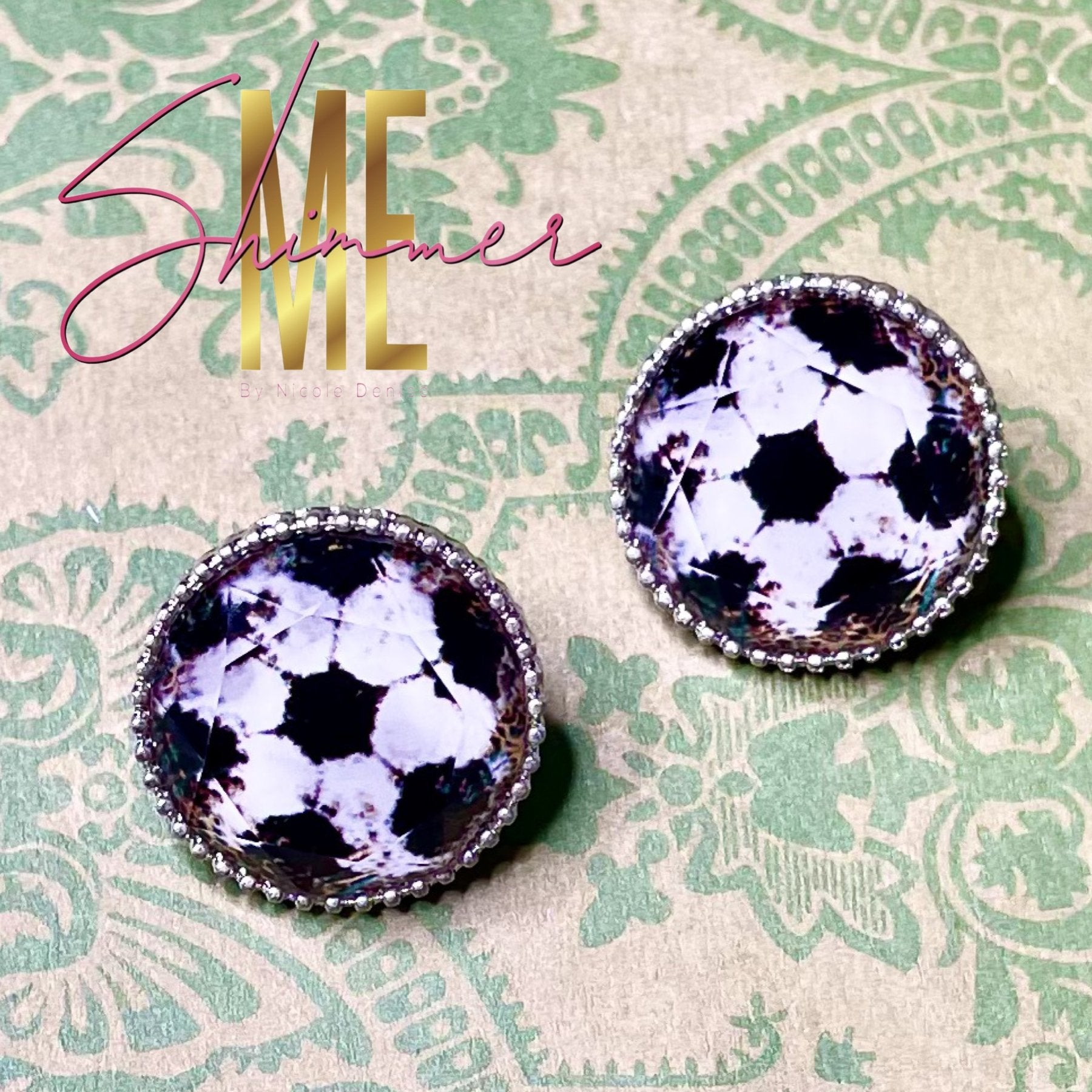 Soccer stud earrings, raised soccer stud earrings, square soccer.