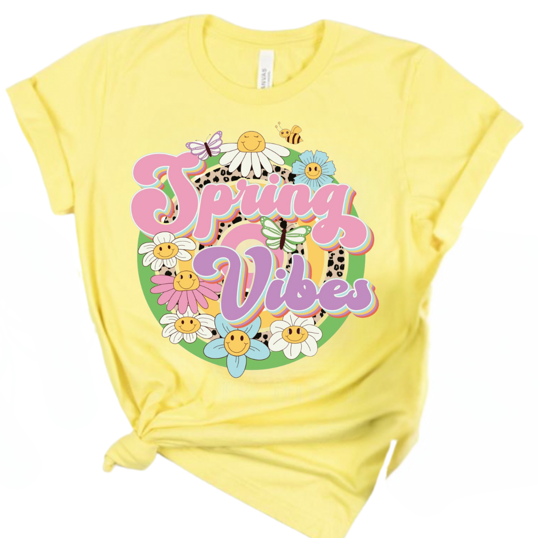 Freshen up your wardrobe with our Spring Vibes Circular Floral Tee — where laid-back comfort meets blooming beauty. Featuring a soft, circular floral design with “Spring Vibes” at the center, this tee brings effortless seasonal style to life.