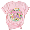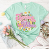 Available in four beautiful spring-ready colors — classic white, soft pink, vibrant teal, and sunny yellow — there's a shade for every vibe and every mood. Whether you're strolling through a spring market or meeting up for brunch, this tee is your go-to for fresh, feel-good fashion.