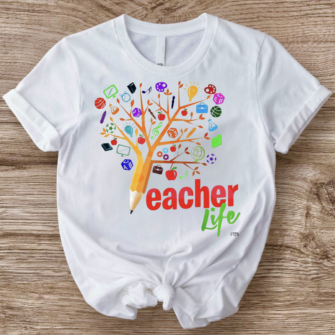Teacher Life Pencil Tree T-Shirt. This shirt is every teacher's dream come true! With a playful design featuring a pencil tree, it's the perfect way to show off your love for teaching while adding some humor to your wardrobe. Plus, the soft fabric will keep you comfortable during long days in the classroom. Trust us, this is one shirt you won't want to leave out of your back-to-school shopping. (Psst...it also makes a great back-to-school gift for your fellow teacher friends!