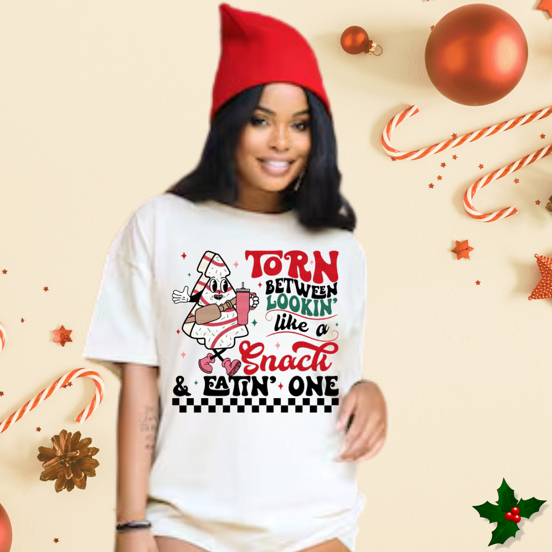 Torn between lookin like a snack in eaten one Christmas T-Shirt.